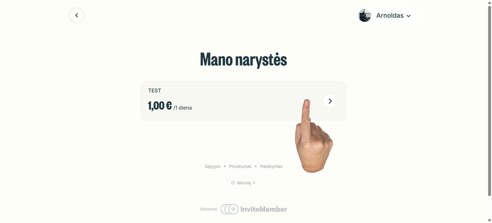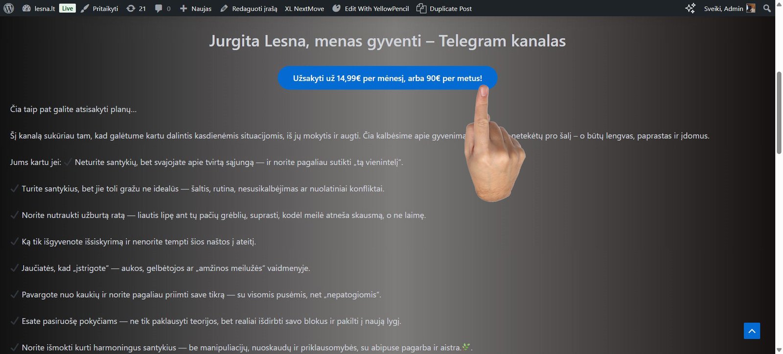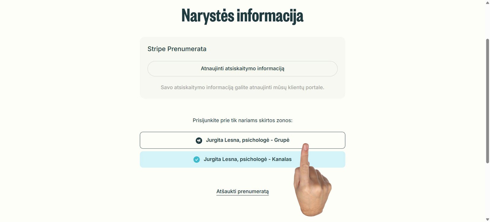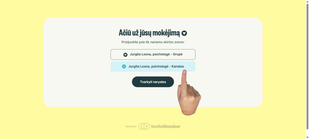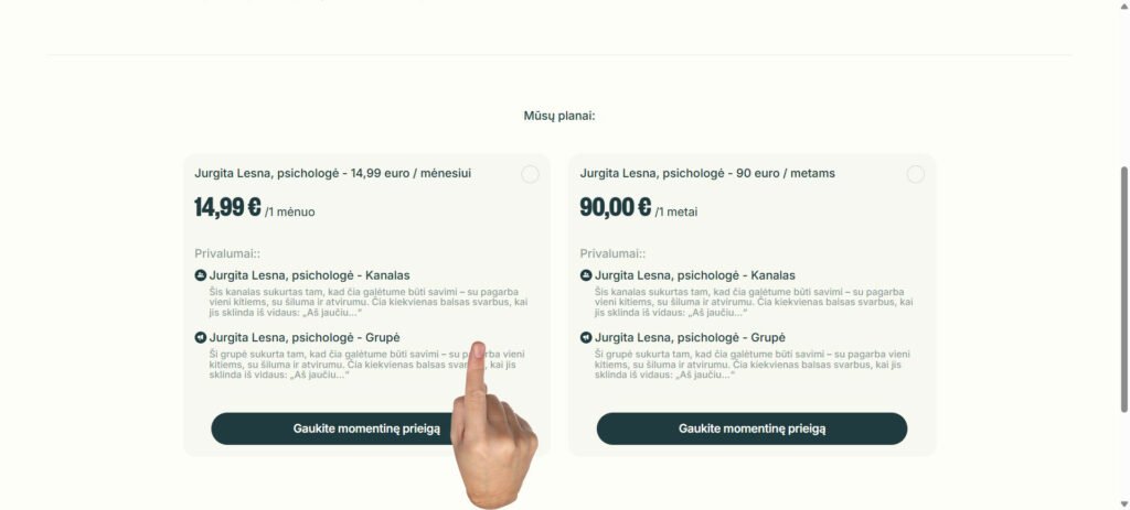 7. Jurgitos Lesnos, Telegram plano puslapyje, pasirenkate jūsų užsakytą narystę.